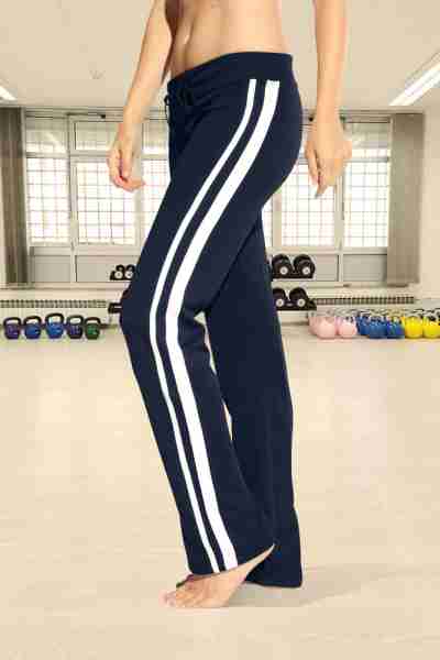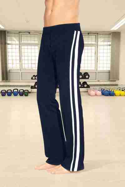 Trousers with back patch pocket, elastic waistband with drawstring, contrast stripes, mixed fabric, interlock, 80 % polyester, 20 % cotton, 260 g/m², S–L. Trousers, back patch pocket, contrast stripes, mixed ...