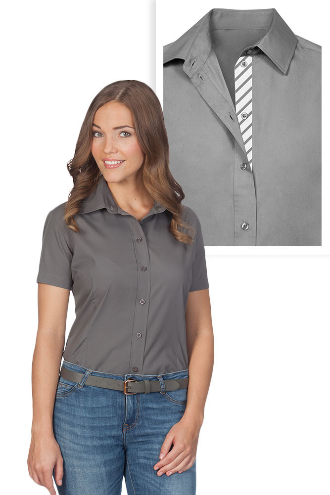 Short sleeve shirt, high-quality finished button panel, design: Longitudinal stripes narrow black, kent-collar, button panel with tone-in-tone buttons, double back yoke, curved hem, neutral size label, separate chest pocket, classic cut, easy-care mixed fabric, poplin, easy care finishing, wash 60° C, spare button, 55% cotton, 45% polyester, 120g/m², XS-XXXL. Single packing.