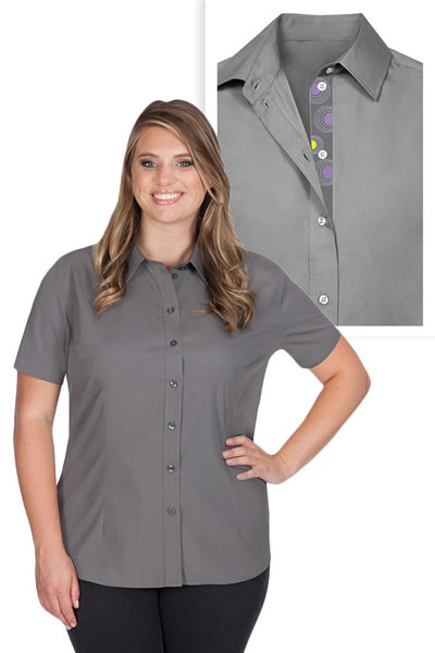 Short sleeve shirt, high-quality finished button panel, design: Design circles, kent-collar, button panel with tone-in-tone buttons, double back yoke, curved hem, neutral size label, separate chest pocket, classic cut, easy-care mixed fabric, poplin, easy care finishing, wash 60° C, spare button, 55% cotton, 45% polyester, 120g/m², XS-XXXL. Single packing.