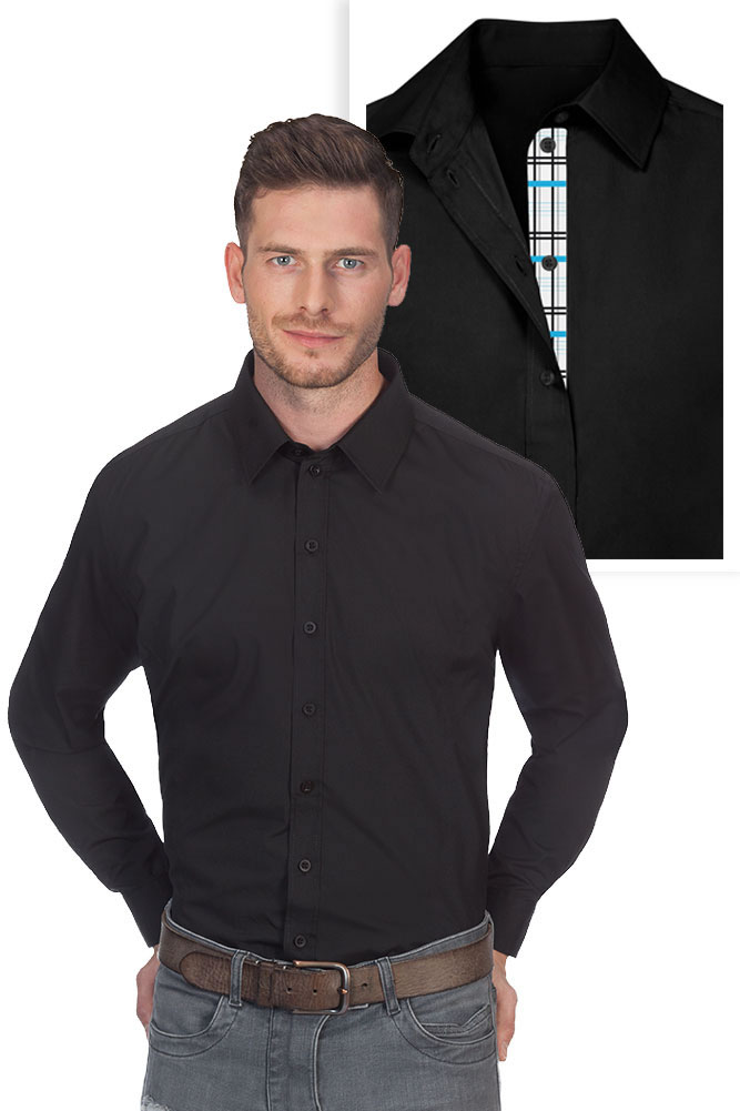 Long sleeve shirt, high-quality finished button panel, design: Longitudinal and cross stripes 2 colours, kent-collar, button panel with tone-in-tone buttons, double back yoke, curved hem, neutral size label, adjustable 2-button cuff (barrel cuff), sleeve placket with button, separate chest pocket, classic cut, easy-care mixed fabric, poplin, easy care finishing, wash 60° C, spare buttons, 55% cotton, 45% polyester, 120g/m², S- 5XL. Single packing.