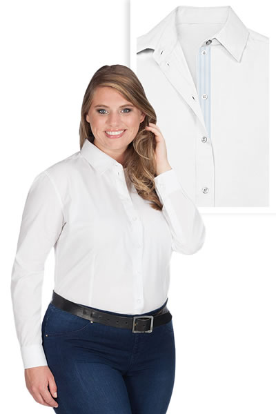 Long sleeve shirt, high-quality finished button panel, design: Longitudinal stripes light blue, button panel with tone-in-tone buttons, double back yoke, curved hem, neutral size label, adjustable 2-button cuff (barrel cuff), sleeve placket with button, separate chest pocket, classic cut, easy-care mixed fabric, poplin, easy care finishing, wash 60° C, spare buttons, 55% cotton, 45% polyester, 120g/m², XS-XXXL. Single packing.