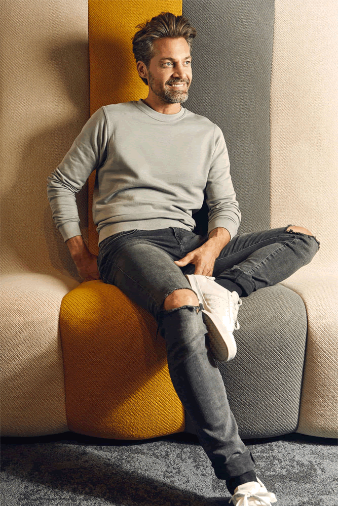 Classic molton sweatshirt, molton brushed inside, with elastane in neck, sleeve cuffs and waistband, produced of long staple combed cotton. The particularly fine surface is highly suitable for any kind